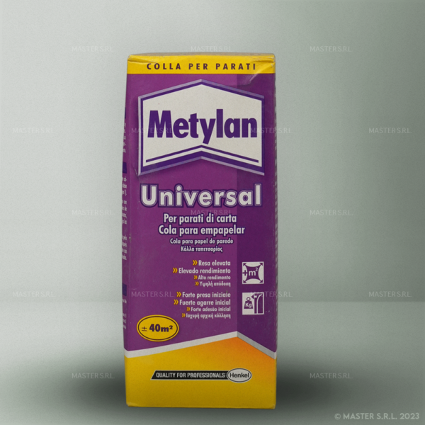 Adesivo a base di metilcellulosa ad alta resa per l’incollaggio di carta da parati leggera, pesanti, sottoparati.