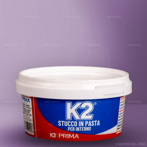 K2 Stucco in Pasta è un ottimo stucco in pasta pronto all’uso. Specifico per interno. Ottimo potere riempitivo ed ottima resa. Delicatamente profumato, non ingiallisce e imputridisce. Privo di sostanze a solvente. Ottima aderenza su ogni tipo di supporto che sia muro o legno. Semplice da applicare. Facile da carteggiare. Ottimo ancoraggio per qualsiasi tipo di pittura e/o carta da parati. Verniciabile con qualsiasi tipo di pittura.