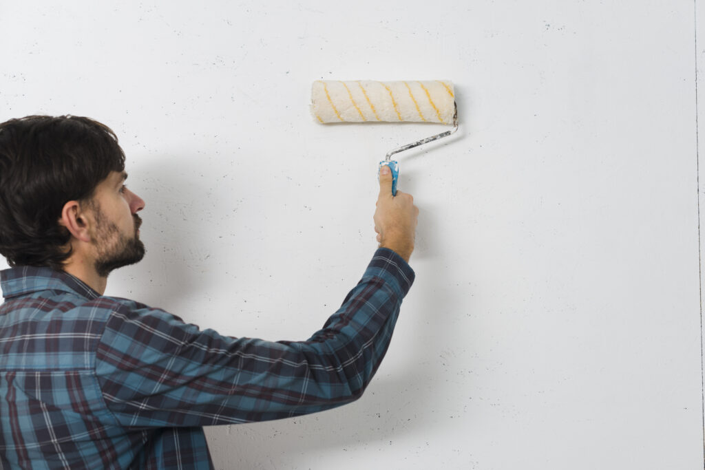 Parti definendo i bordi e gli spigoli con un pennello angolato (tecnica “cut-in”), mantenendo un margine bagnato da raccordare con il rullo.